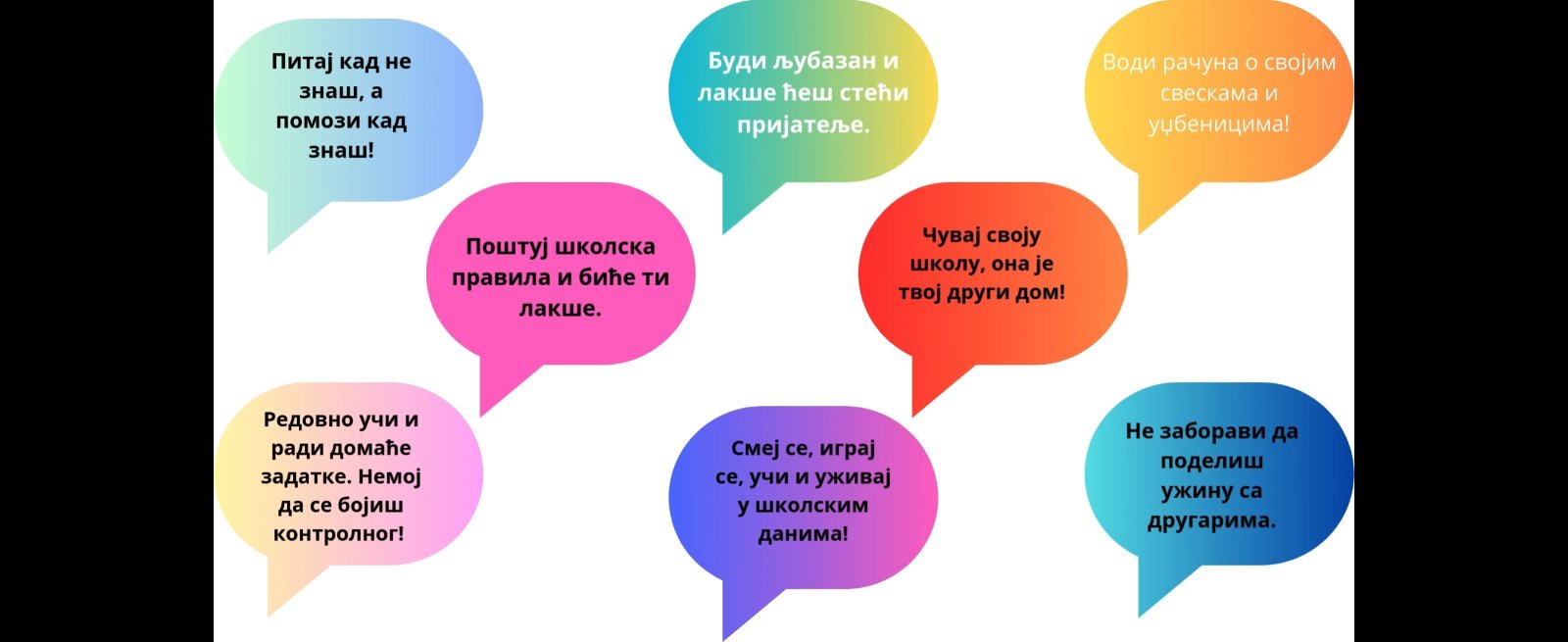 припремили су кратке скечеве са важним порукама о школском животу за будуће ђаке наше школе. Ови скечеви настали су као резултат заједничког рада и разговора о томе шта је важно за успех у школи и добру атмосферу међу другарима.