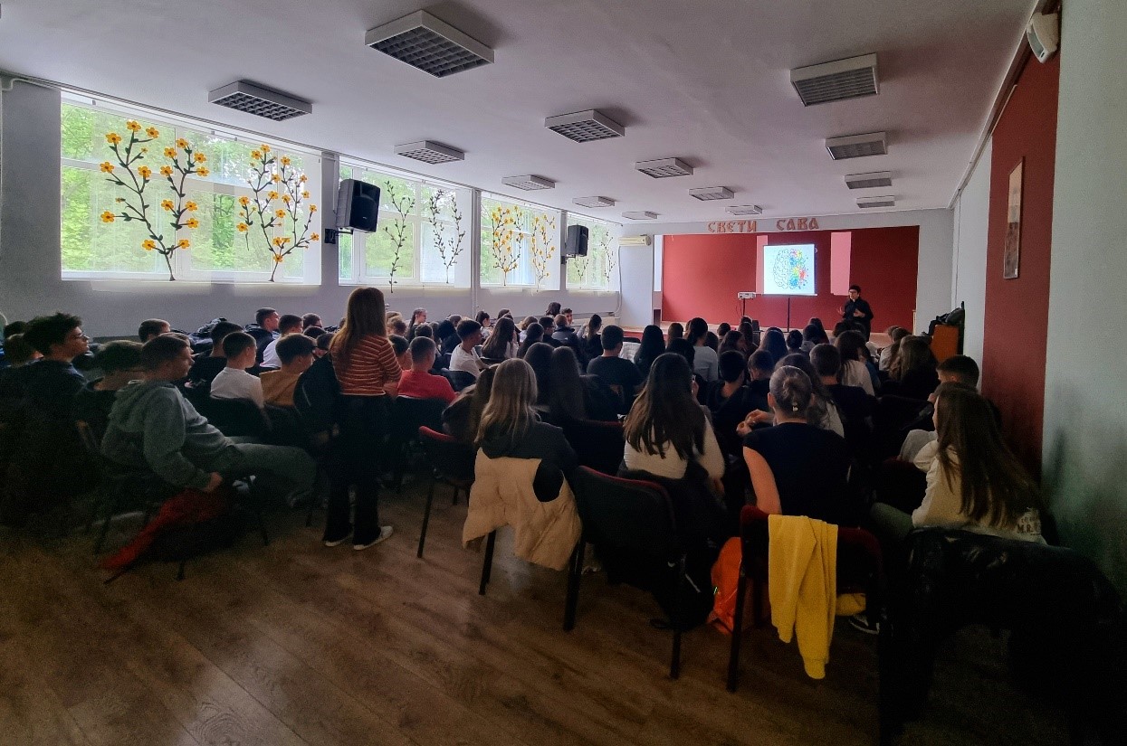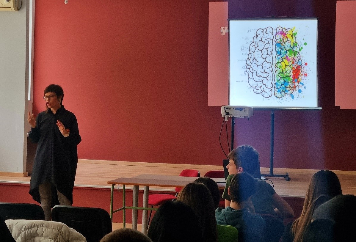 Ученици седмог и осмог разреда су 18. априла у свечаној сали наше школе имали прилике да присуствују једном занимљивом предавању о левој и десној хемисфери мозга и избору каријере. Ову тему ученицима је покушала да приближи Сашка Огњановић, која се након дипломе економског факултета и вишегодишњег рада у струци, како сама каже, неповратно заљубила у глину и усмерила своју каријеру ка уметничком стваралаштву.