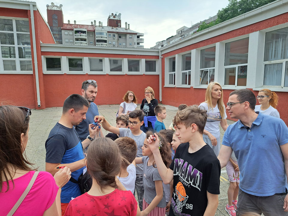 Директорка школе, Гордана Радојевић, која је и иницијатор и покретач свих новина у нашој школи, велики ентузијаста и стваралац добре и позитивне атмосфере и дружења својим учешћем и присуством је поручила да добра организација, посвећеност и изнад свега љубав према ономе што радимо доноси задовољство и срећу јер је данас у школском дворишту много срећних, задовољних и озарених лица.